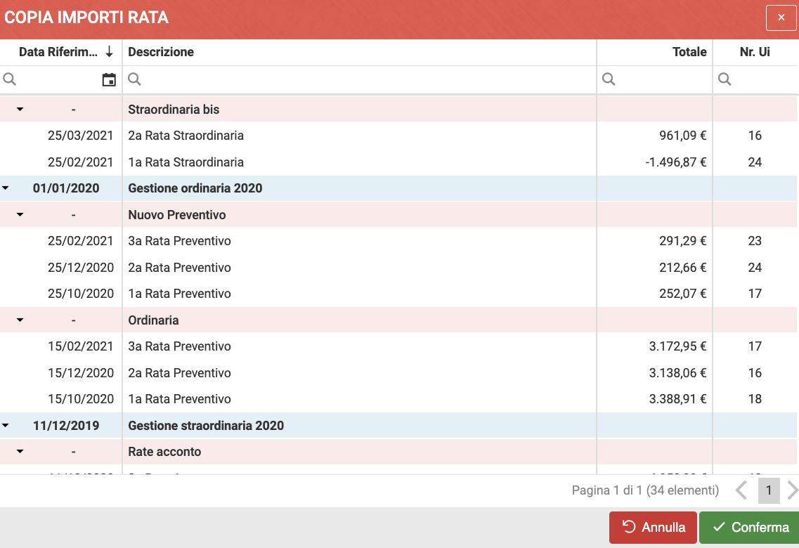 - Verranno riportati i versamenti in acconto che saranno utilizzati per decrementare gli importi delle rate.